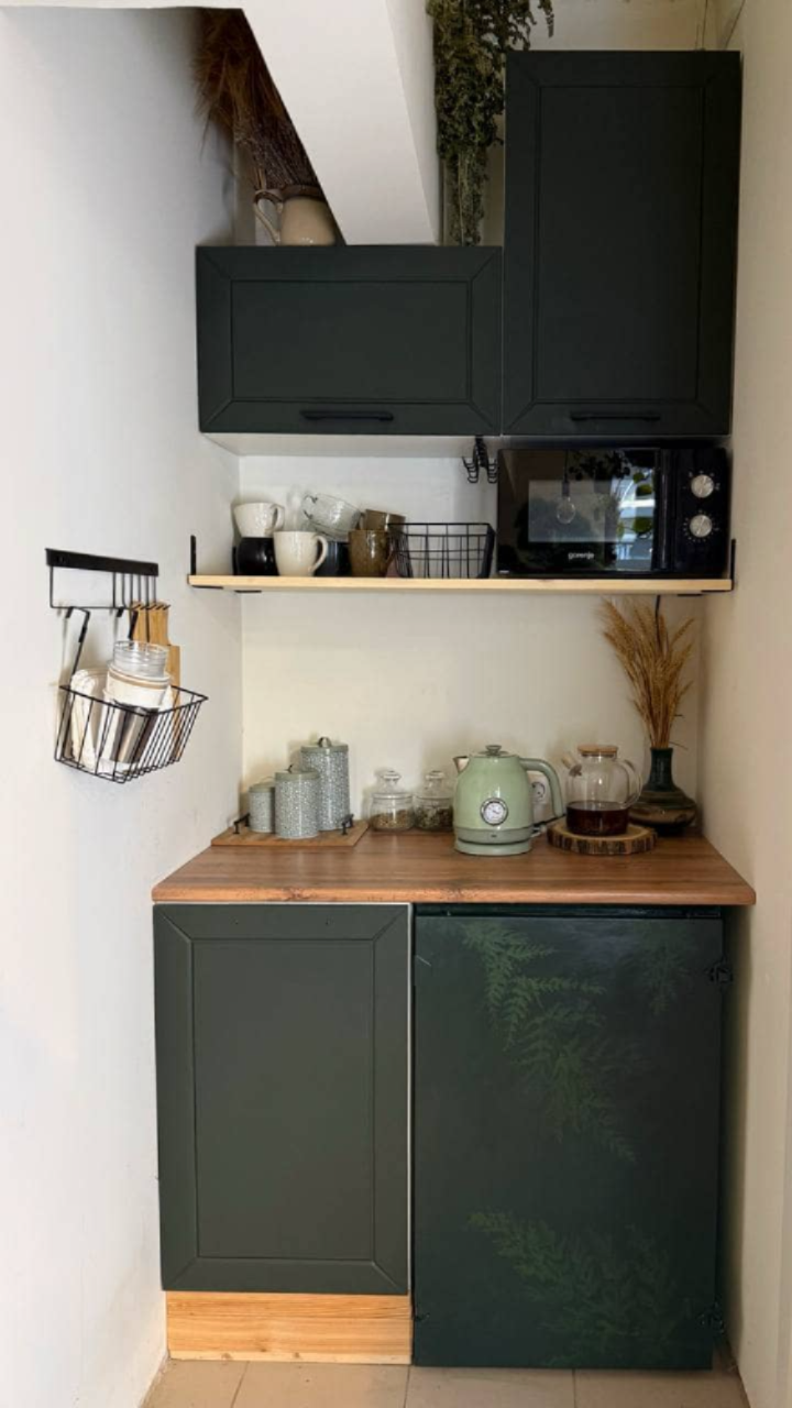 В нашей студии есть небольшая, но очень уютная кухня, где вы найдете все необходимое для вашего праздника (Холодильник, микроволновка, кулер, чайник, чайник заварочный, чай, сахар, одноразовая посуда и посуда для сервировки,бокалы, кружки, салфетки сухие и влажные).